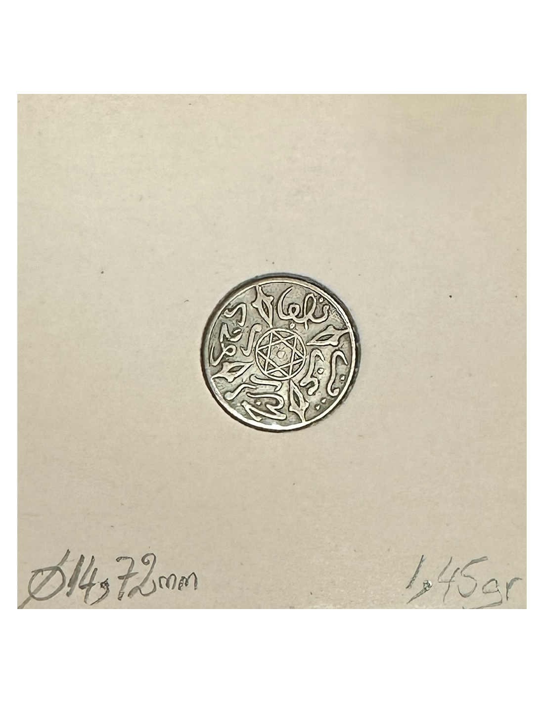 Pièce de monnaie marocaine en argent, datant de l'année 1314 de l'Hégire