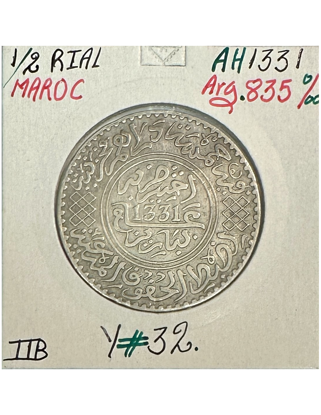 Pièce de monnaie marocaine en argent, datant de l'année 1321 de l'Hégire