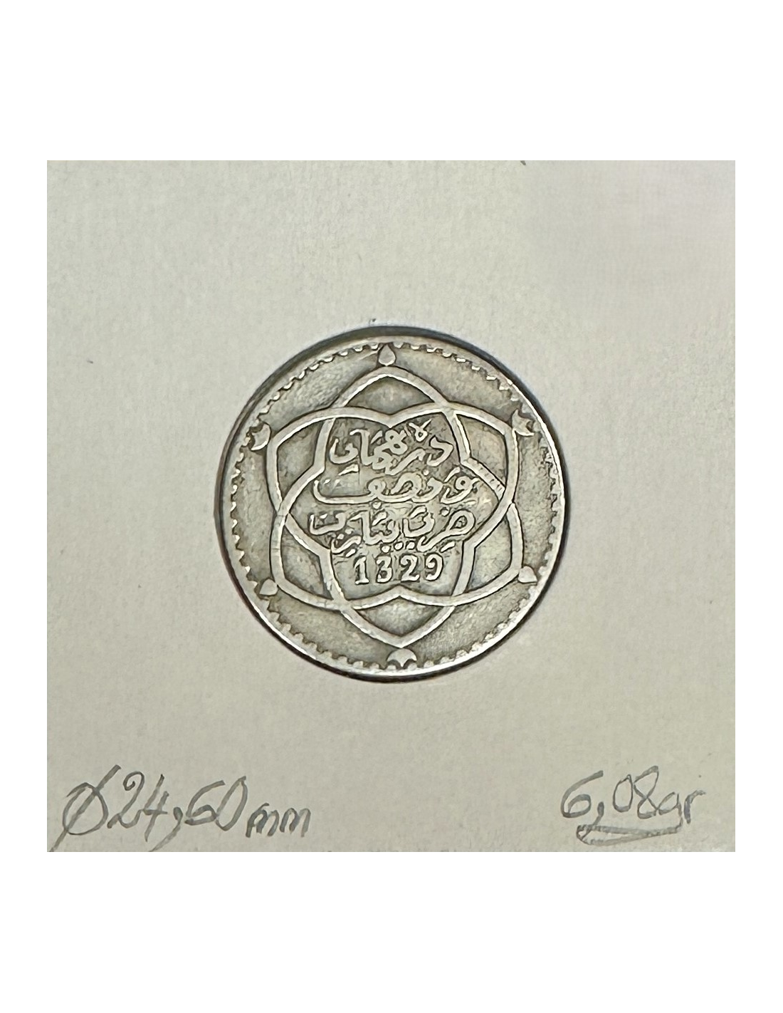 Pièce de monnaie marocaine en argent, datant de l'année 1318 de l'Hégire
