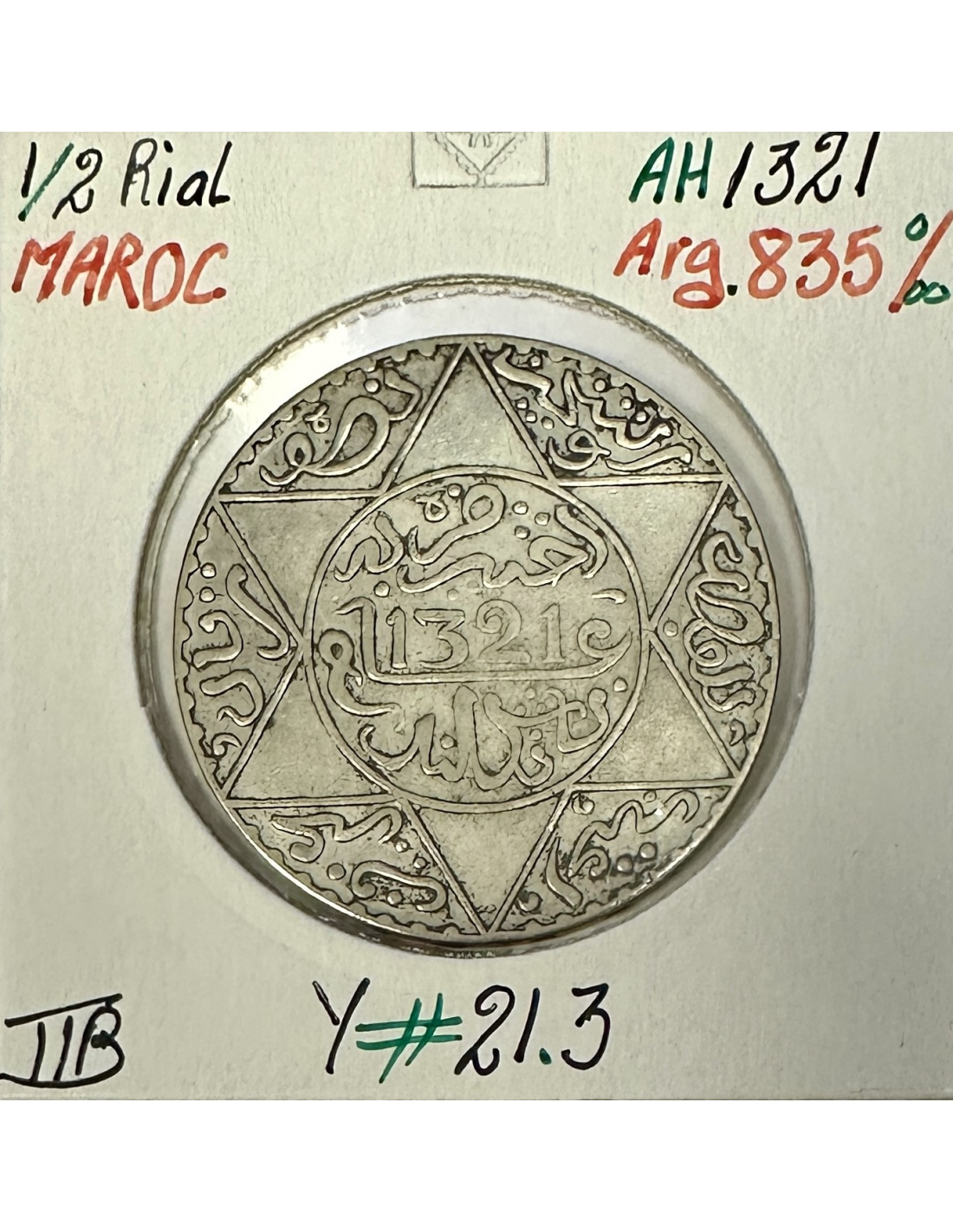Pièce de monnaie en argent du Maroc de 1 Dirham, datant de l'année 1313 de l'Hégire