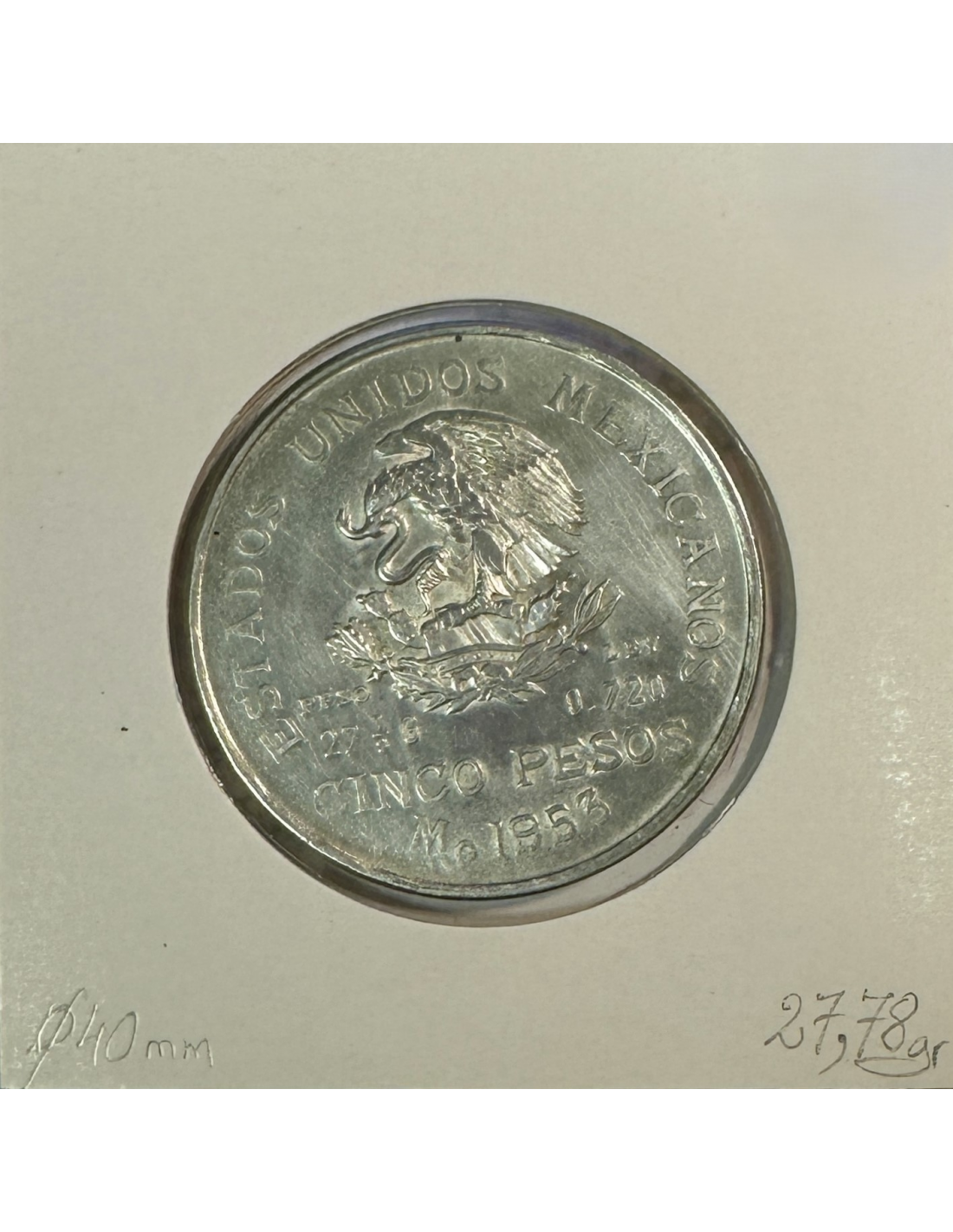 Pièce de monnaie du Mexique en argent de 5 Pesos 1952