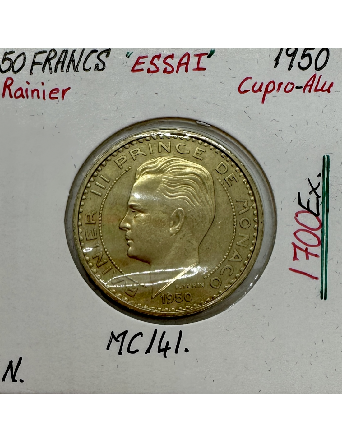 Essai de Monaco, pièce de monnaie de 5 francs 1971 en Cupro-Nickel à l'effigie du Prince Rainier III de Monaco