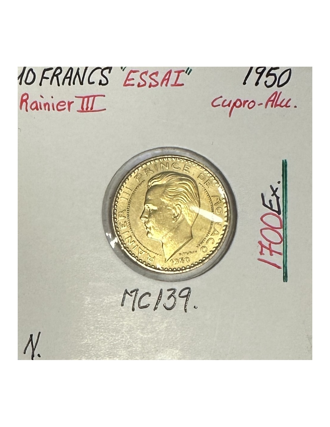 MONACO - 10 FRANCS 1950 (Rainier III) Monnaie en Cupro-Alu // ESSAI