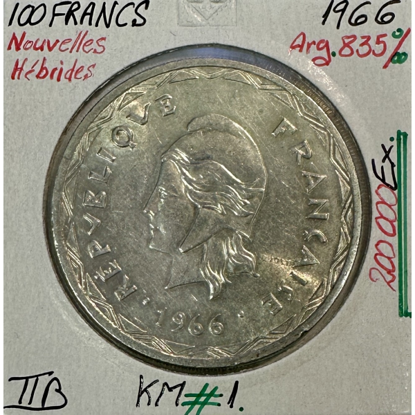 NOUVELLES HEBRIDES - 100 FRANCS 1966 - Monnaie en Argent // Qualité : TTB