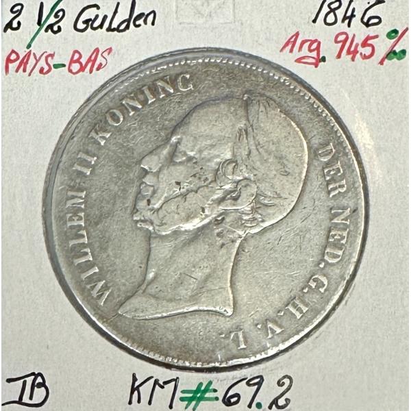 PAYS-BAS - 2 1/2 GULDEN 1846 - Pièce de Monnaie en Argent // Qualité : TB