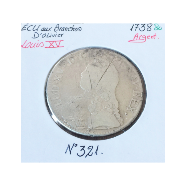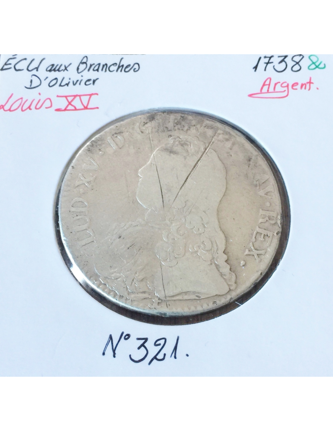 ECU aux Branches d'Olivier - LOUIS XV - 1738 - Monnaie en Argent // B