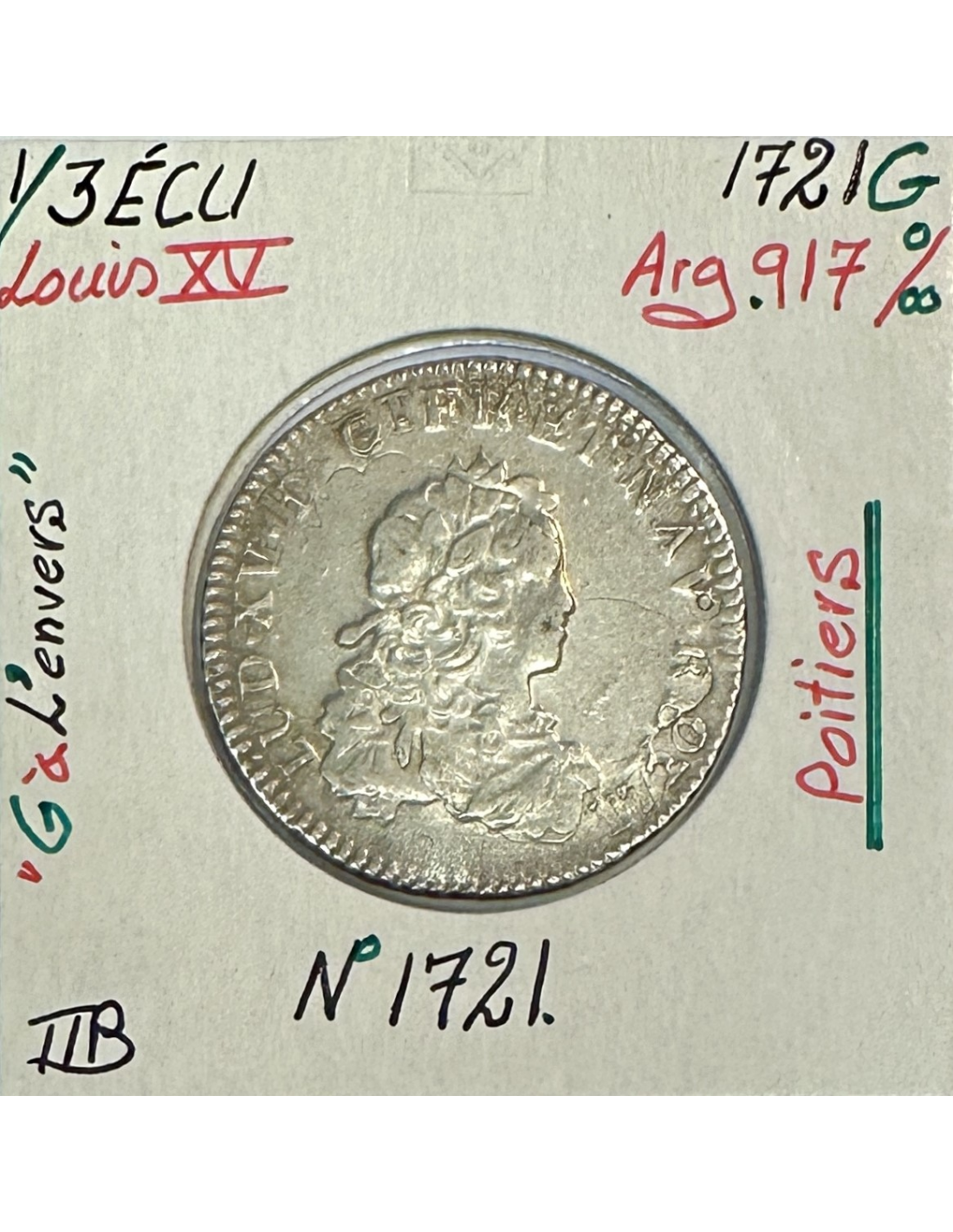 1/3 ECU de France - LOUIS XV - 1721 (P) Monnaie en Argent // Variété