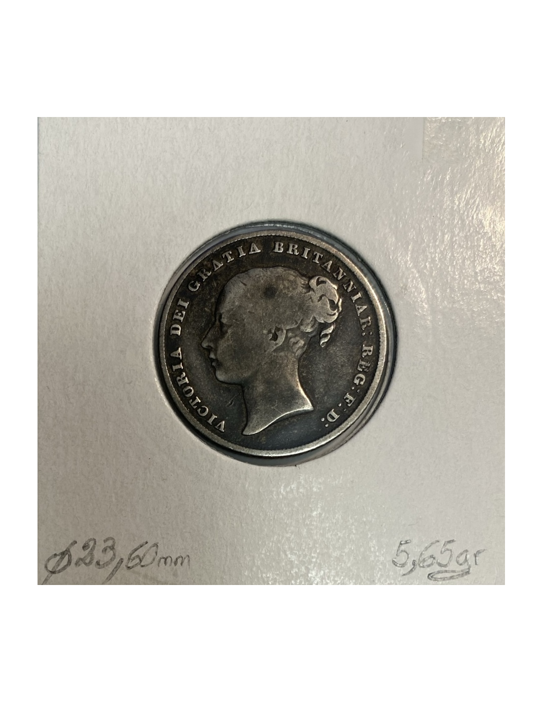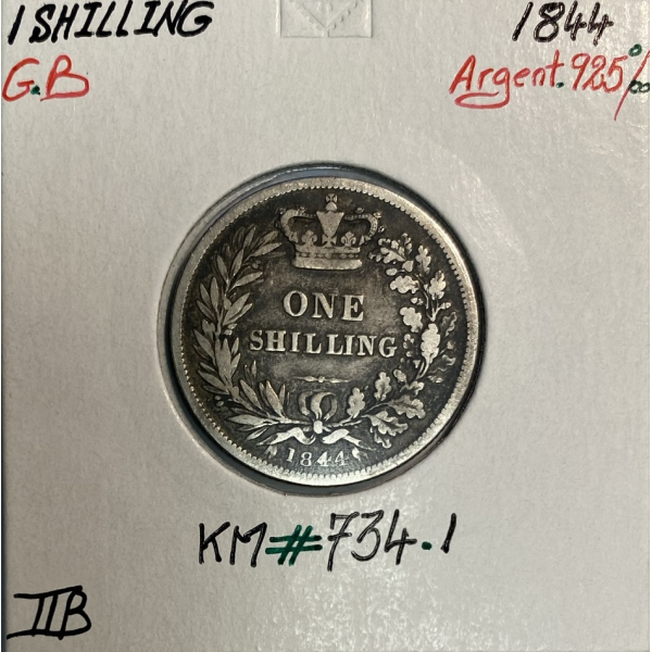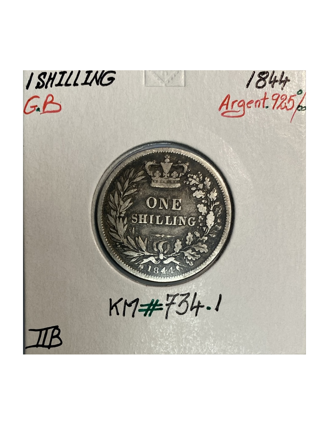 Pièce de monnaie anglaise en Argent de 1 Shilling 1844 à l'effigie de la Reine Victoria