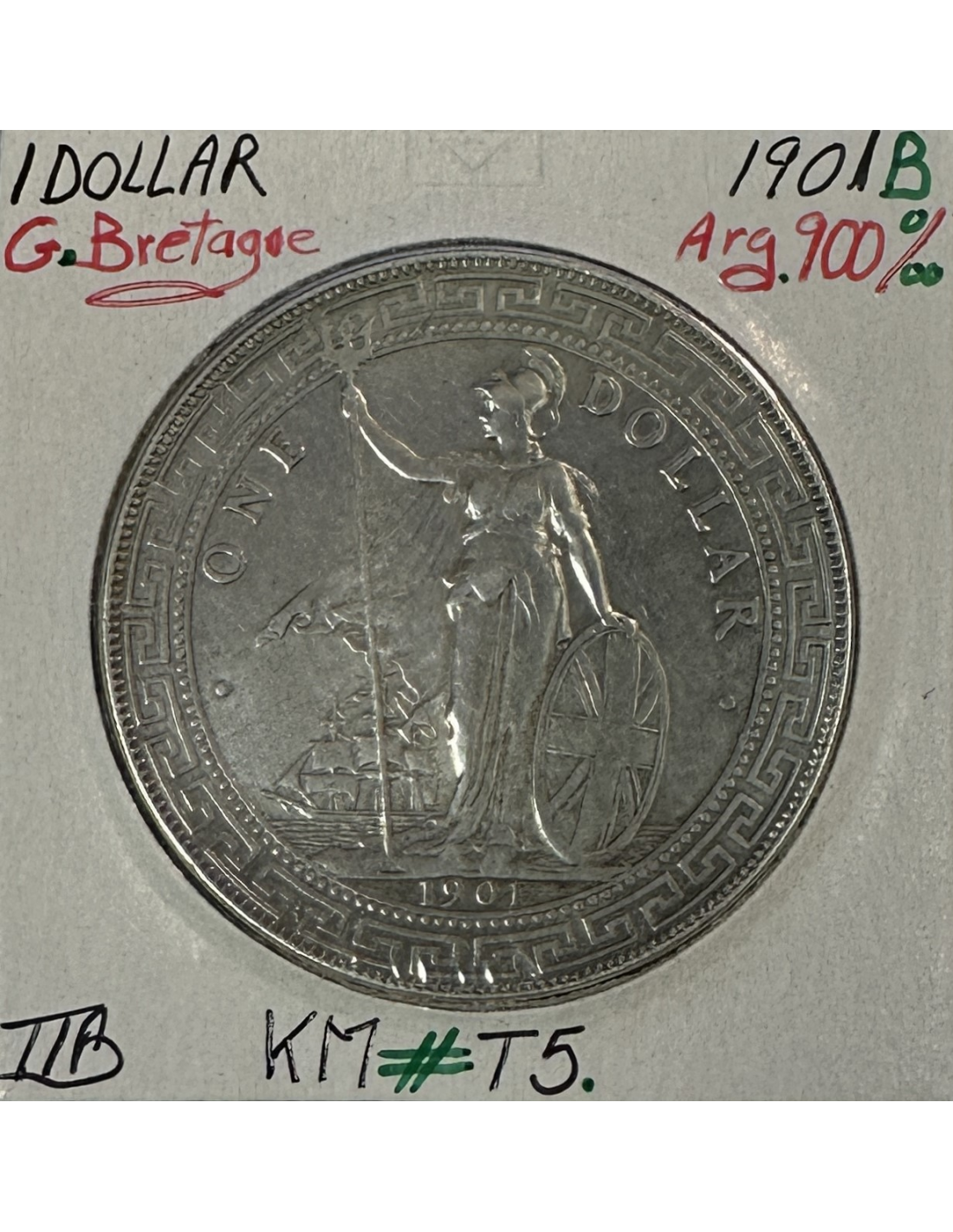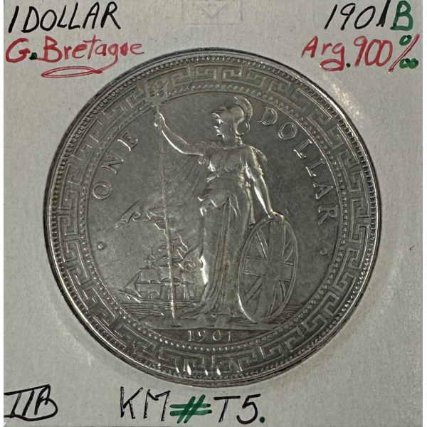 Pièce de monnaie anglaise en Argent de 1 Dollar 1901B
