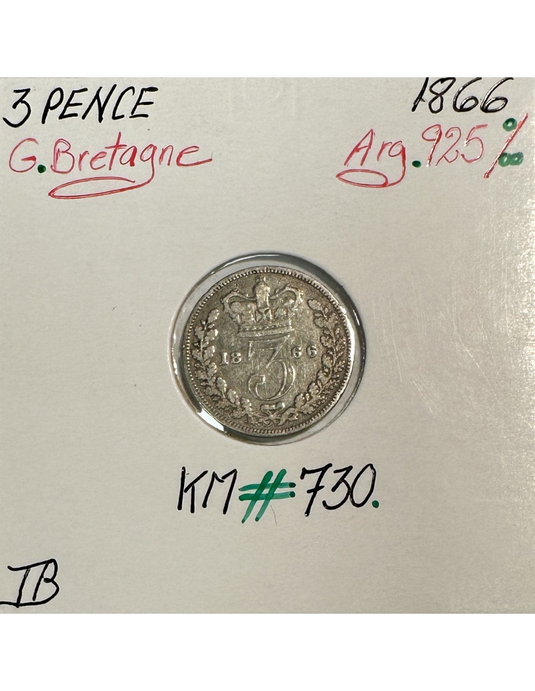 ROYAUME-UNI / GRANDE BRETAGNE (3 Pence 1866) Monnaie en Argent // Qualité : TB