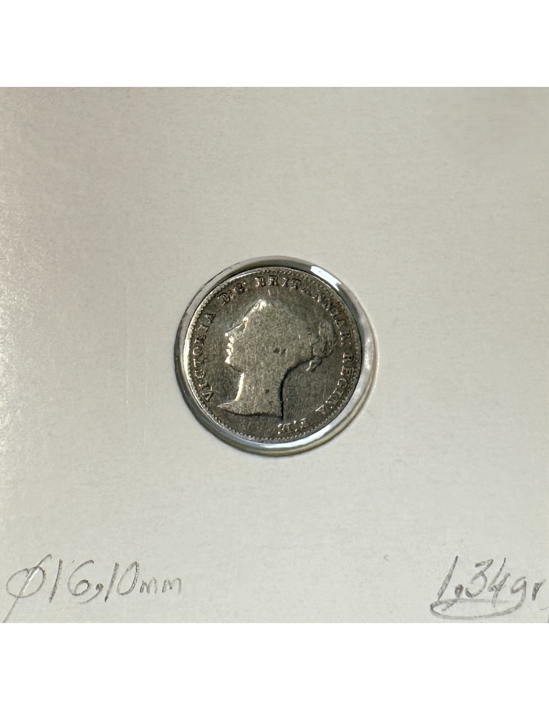 Pièce de monnaie anglaise en Argent de 3 Pence 1866