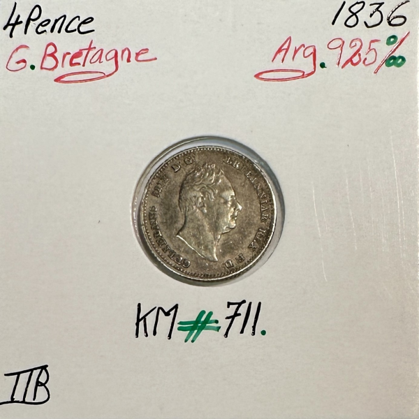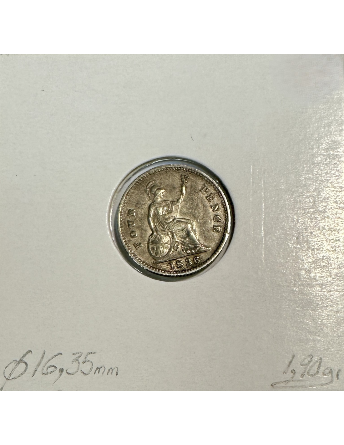 Pièce de monnaie anglaise en Argent de 4 Pence 1836
