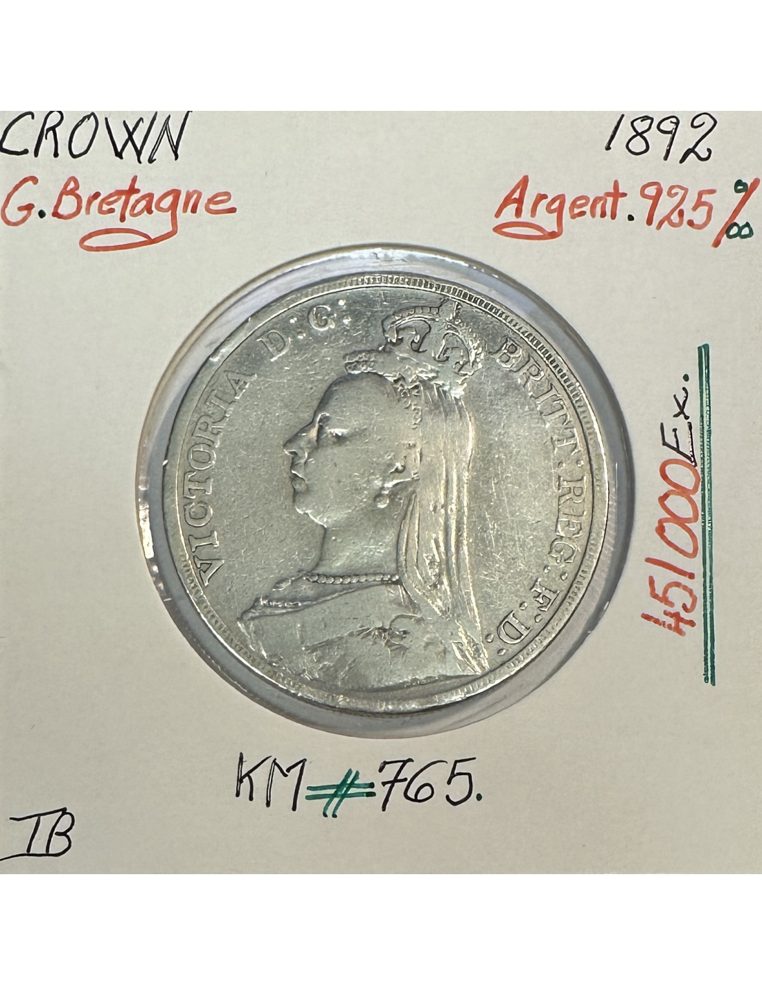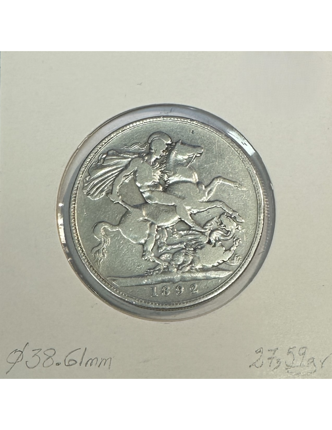 Pièce de monnaie anglaise en Argent de 1 Crown 1892 à l'effigie de la Reine Victoria