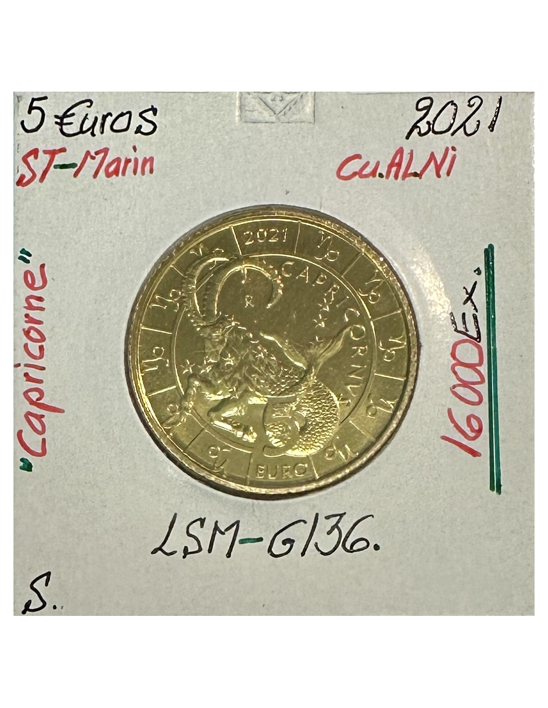 Pièce de monnaie commémorative en Cuivre.Alu.Nickel de 5 Euro 2021 de Saint-Marin (Capricorne)