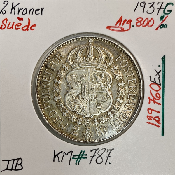 SUEDE - 2 KRONER 1937 G - Pièce de Monnaie en Argent // Qualité : TTB