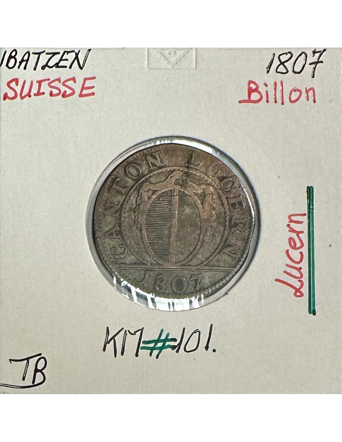 SUISSE LUCERN - 1 BATZEN 1807 - Pièce de Monnaie en Billon // Qualité : TB