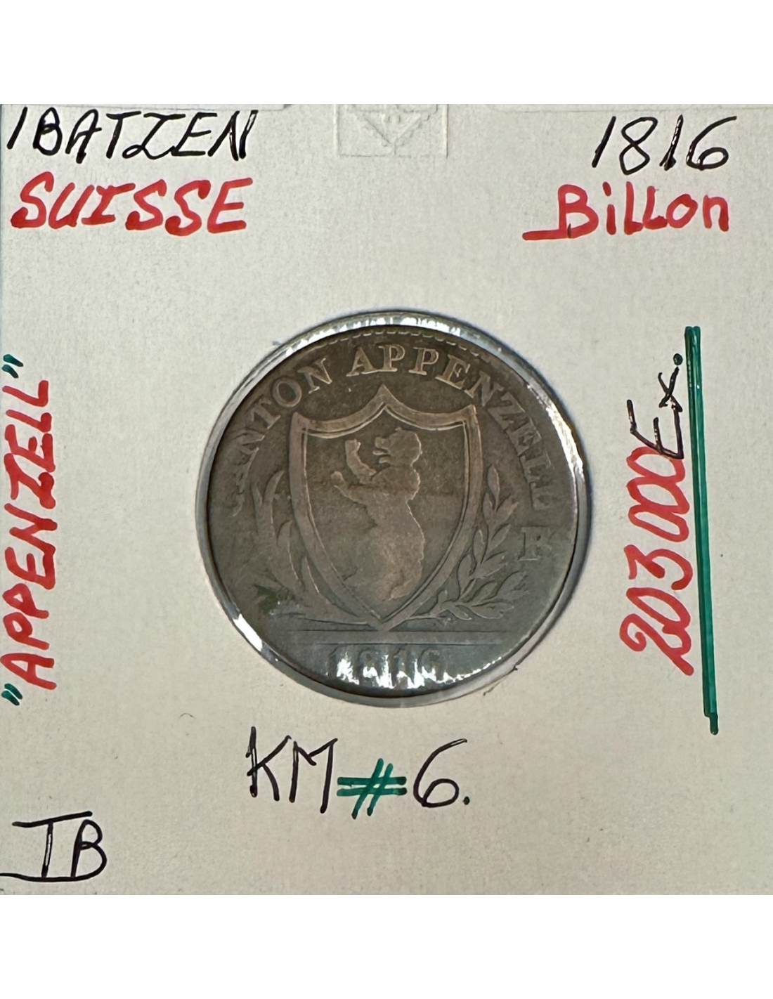 Pièce de monnaie suisse de 1 Batzen 1813K en Billon