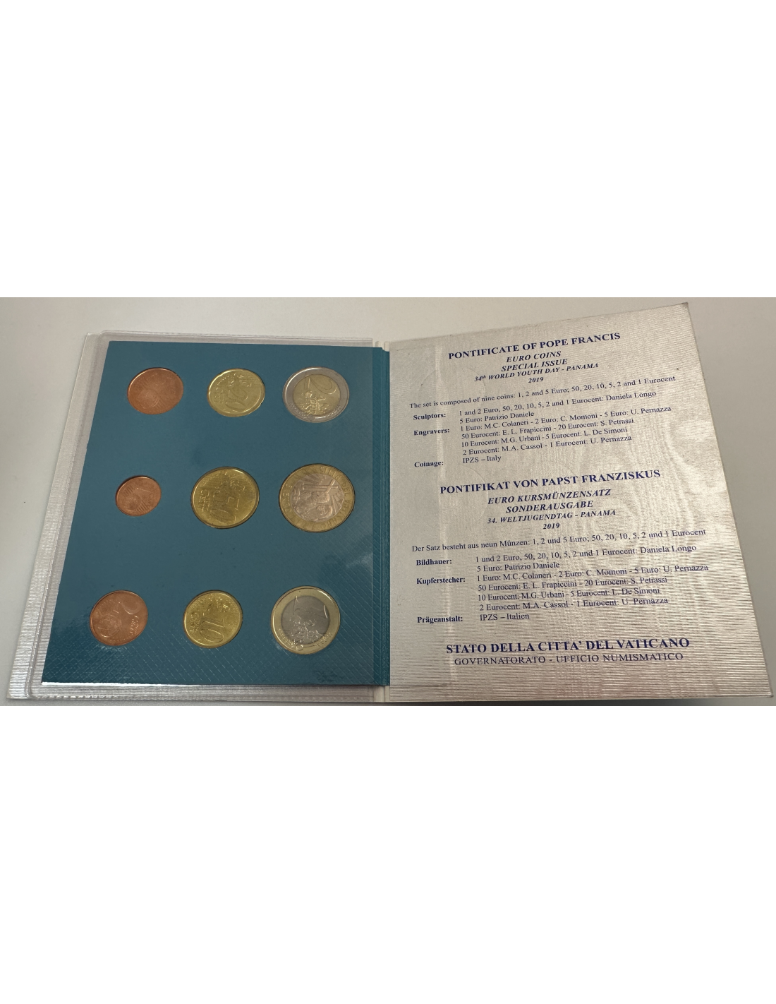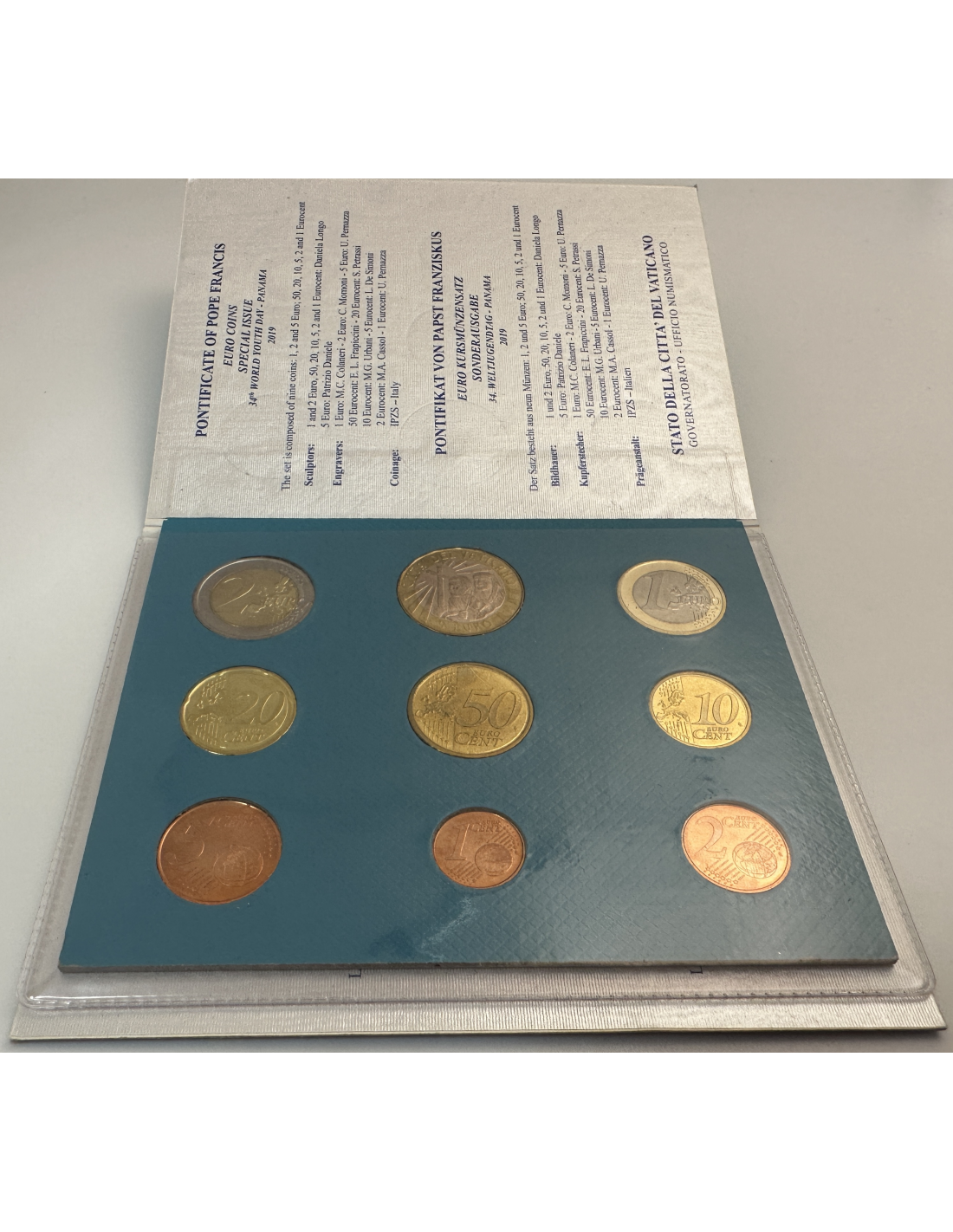 Coffret 2023 du Vatican comprenant la pièce de 20 Euro 2023 en cuivre du Vatican représentant la Création de l'Homme de Michel-Ange